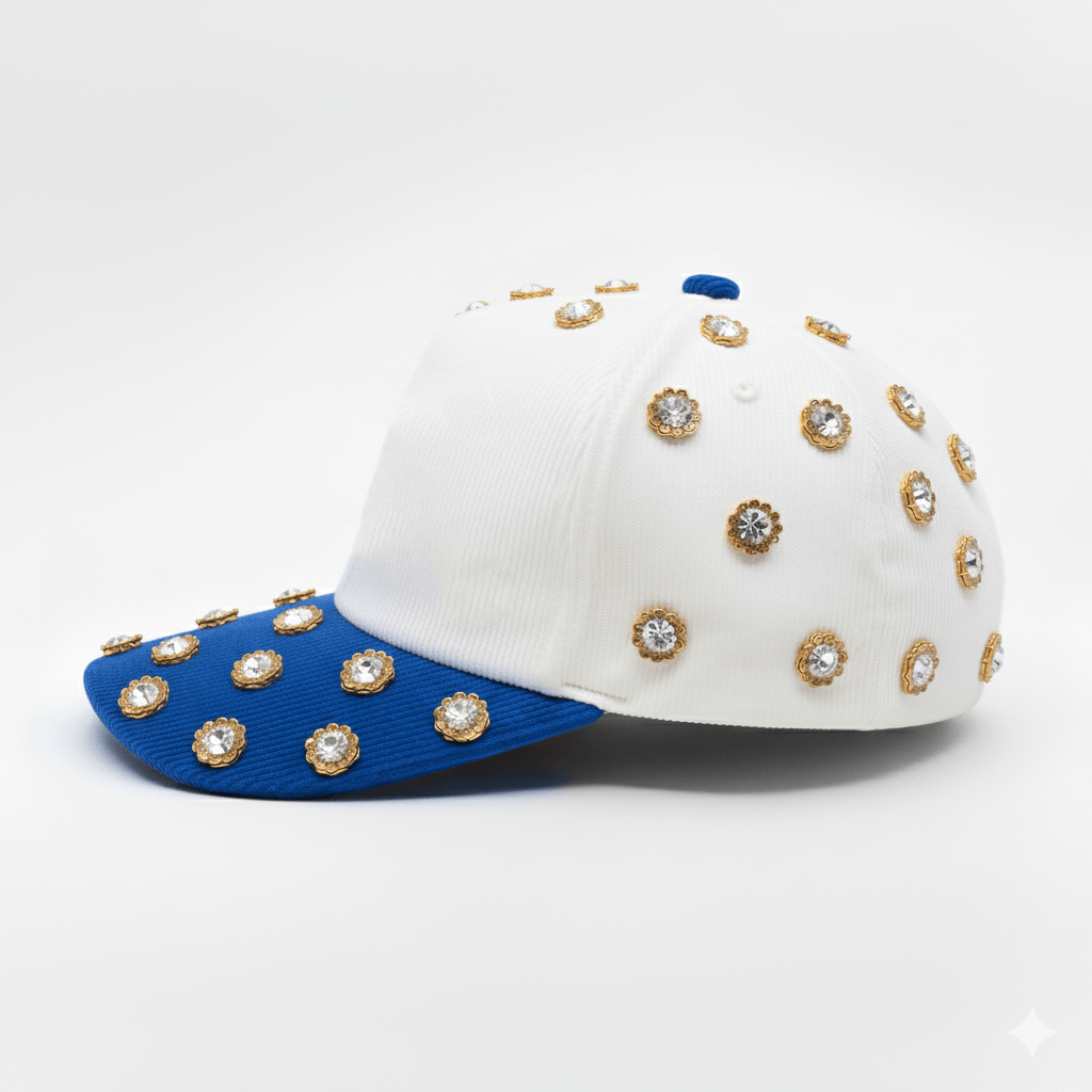 Sunflower Rhinestones | White/Royal Blue Cap